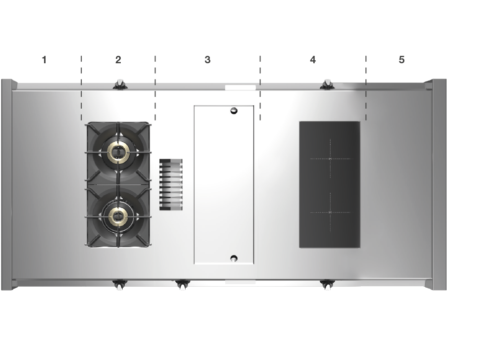 Possibilità di realizzare blocchi cottura senza fughe laterali con piano unico di lunghezza massima 4 metri.