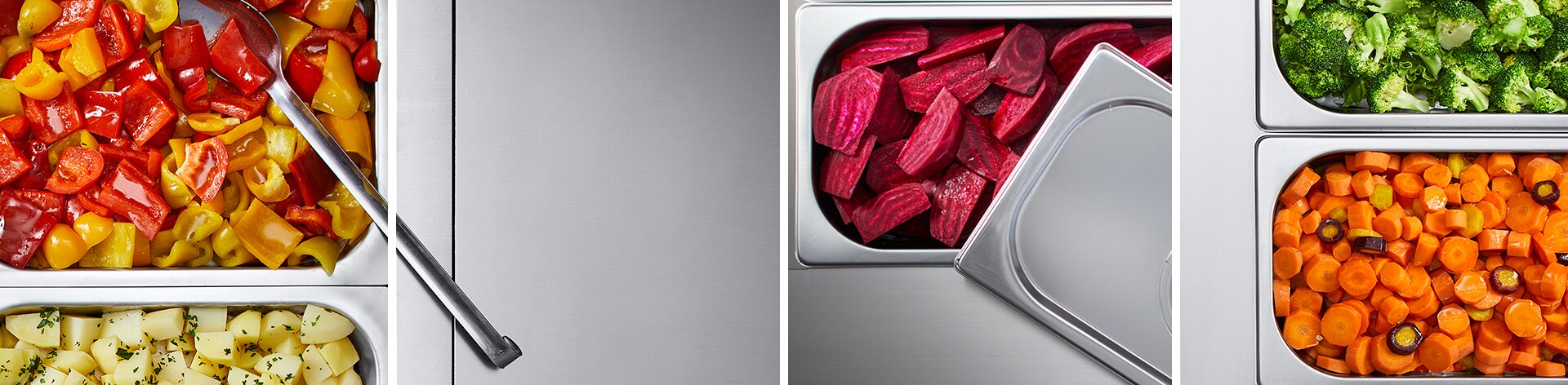 Grazie alle apposite bacinelle, nel bagnomaria Fun 700 puoi conservare alla temperatura di servizio