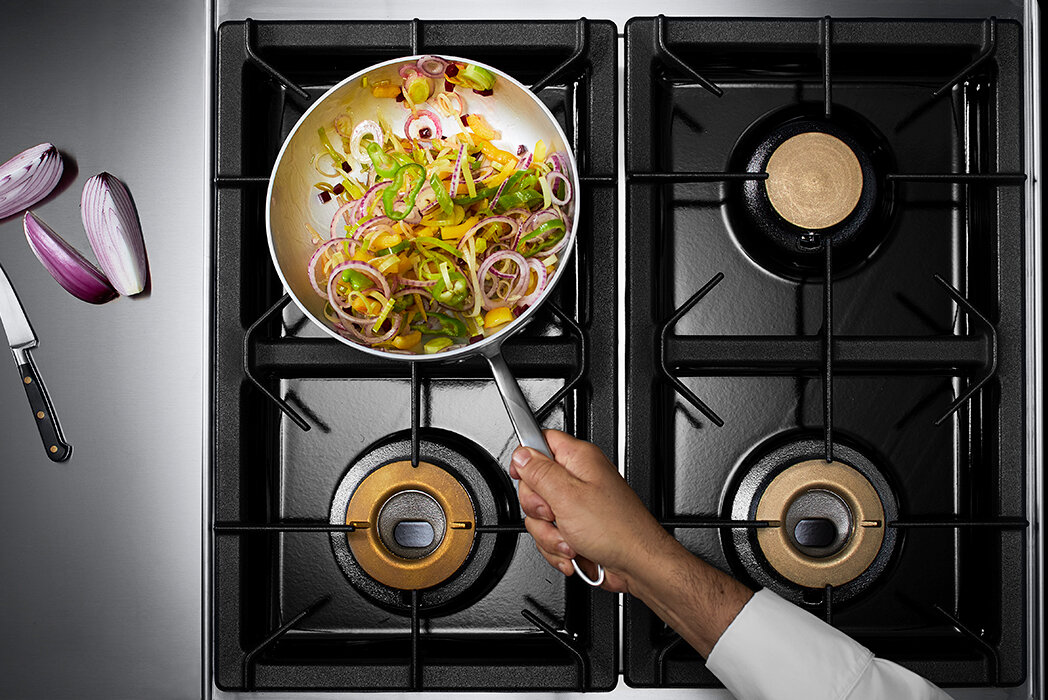 Con il fuoco delle cucine a gas Fun 700 puoi cuocere il pesce, rosolare la carne e bollire le verdure