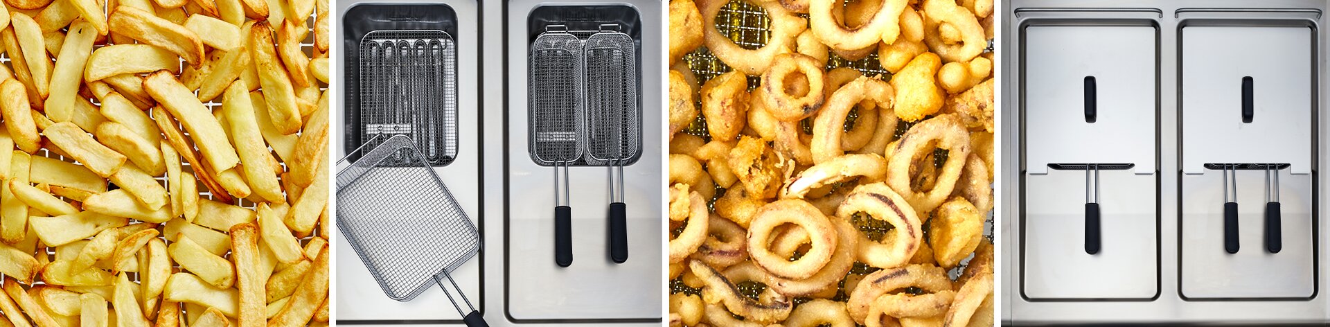 freschi o surgelati. Per cuocere contemporaneamente alimenti diversi scelgi la friggitrice con doppia