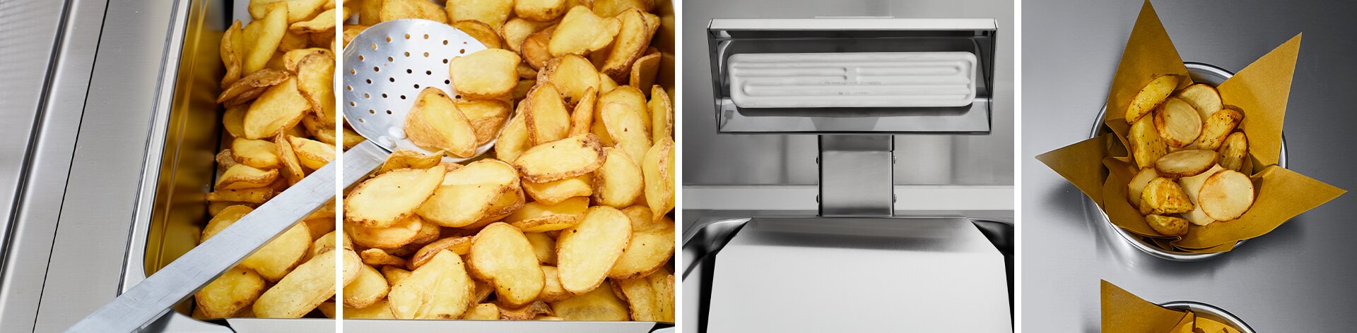 Lo scaldapatate Fun 700 si abbina alla friggitrice per mantenere in temperatura