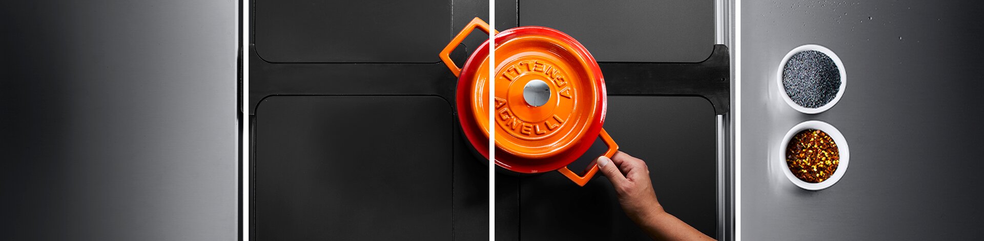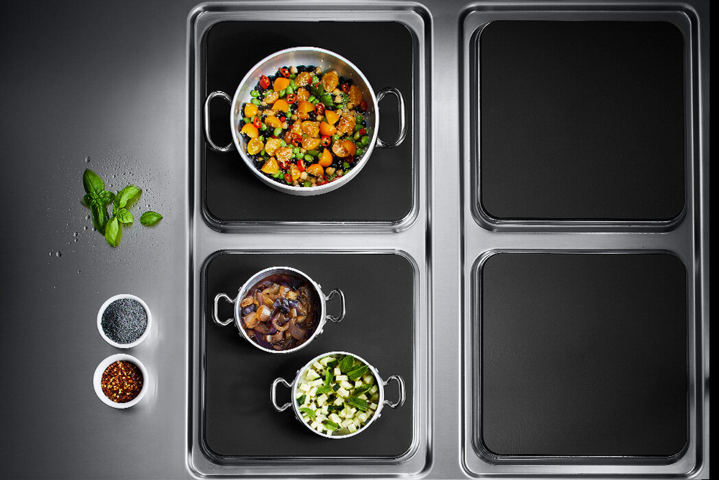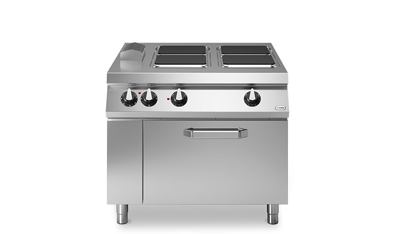 La cucina elettrica Roc 1100 con piastre quadre è caratterizzata dall'operatività su due lati.