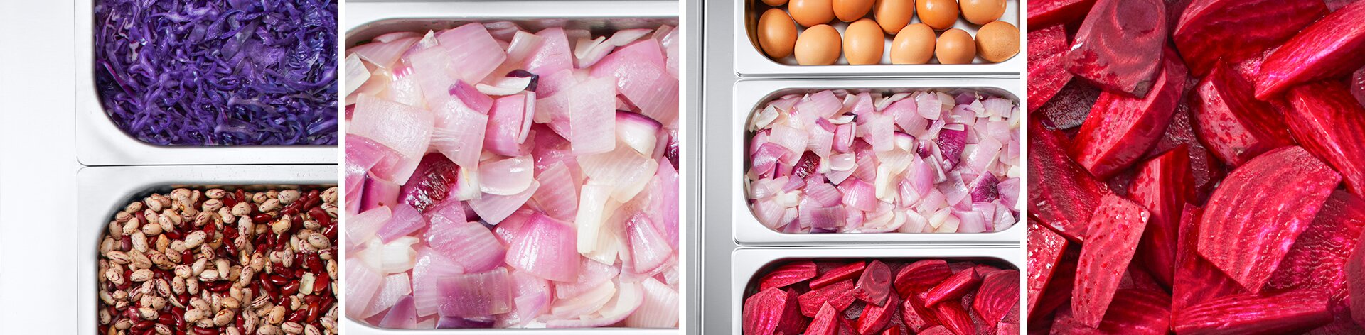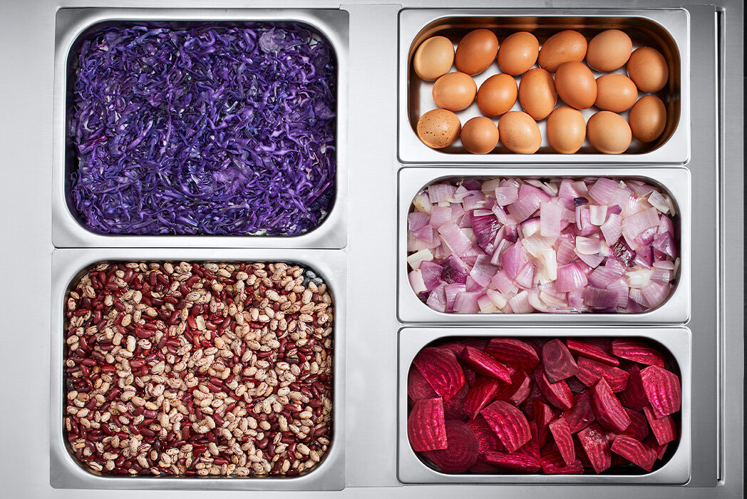 Gli alimenti riposti in bacinelle modulari vengono mantenuti caldi durante il servizio.
