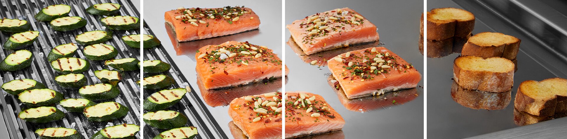 L'ampia superficie di cottura può essere liscia, rigata o combinare le due finiture