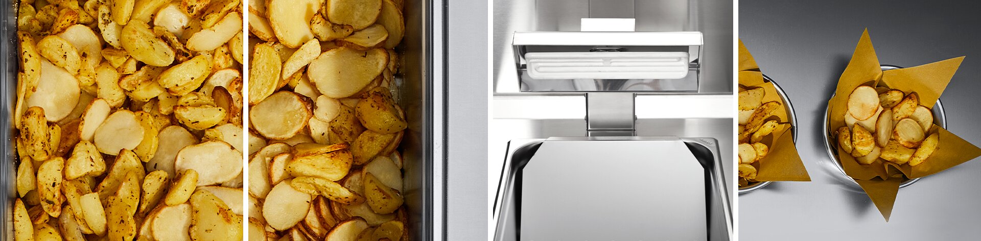 Lo scaldapatate Roc 700 mantiene la croccantezza di patate, pesce, verdure e carne appena fritte.