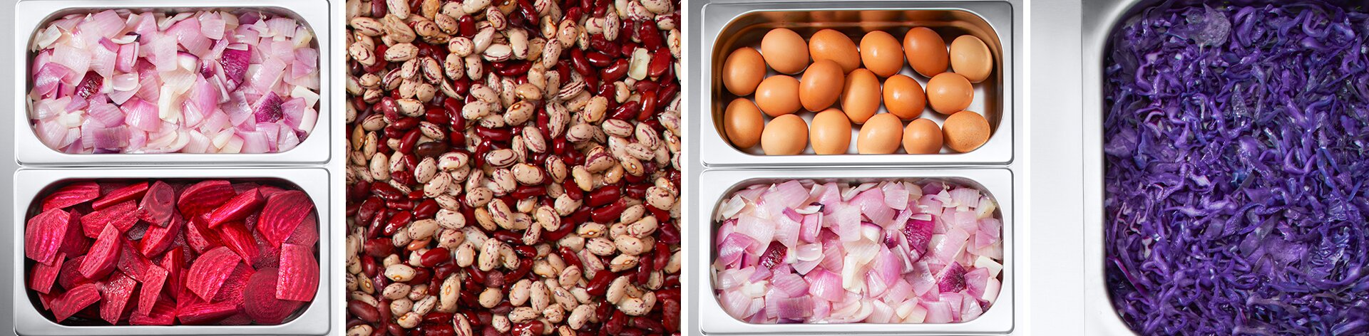 Variando le dimensioni delle bacinelle si modifica la quantità e la disposizione degli alimenti.