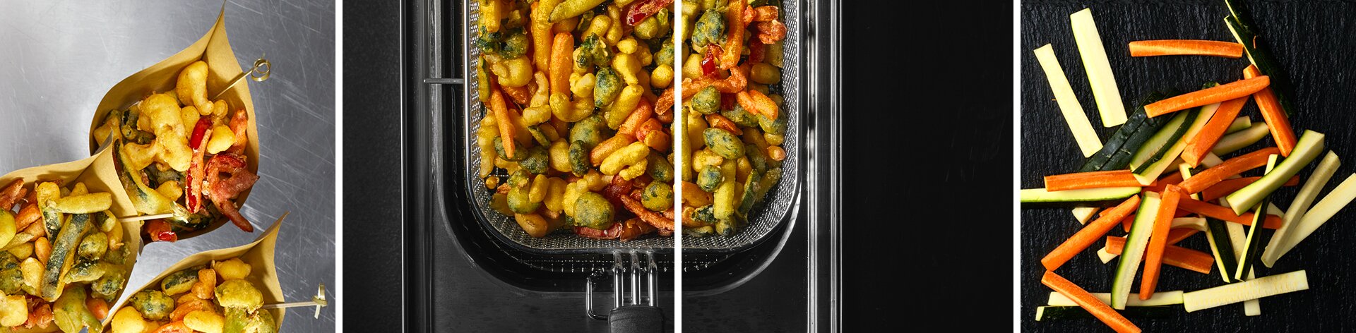 Le elevate performance di modelli a gas ed elettrici consentono di realizzare con anticipo fritture da rigenerare