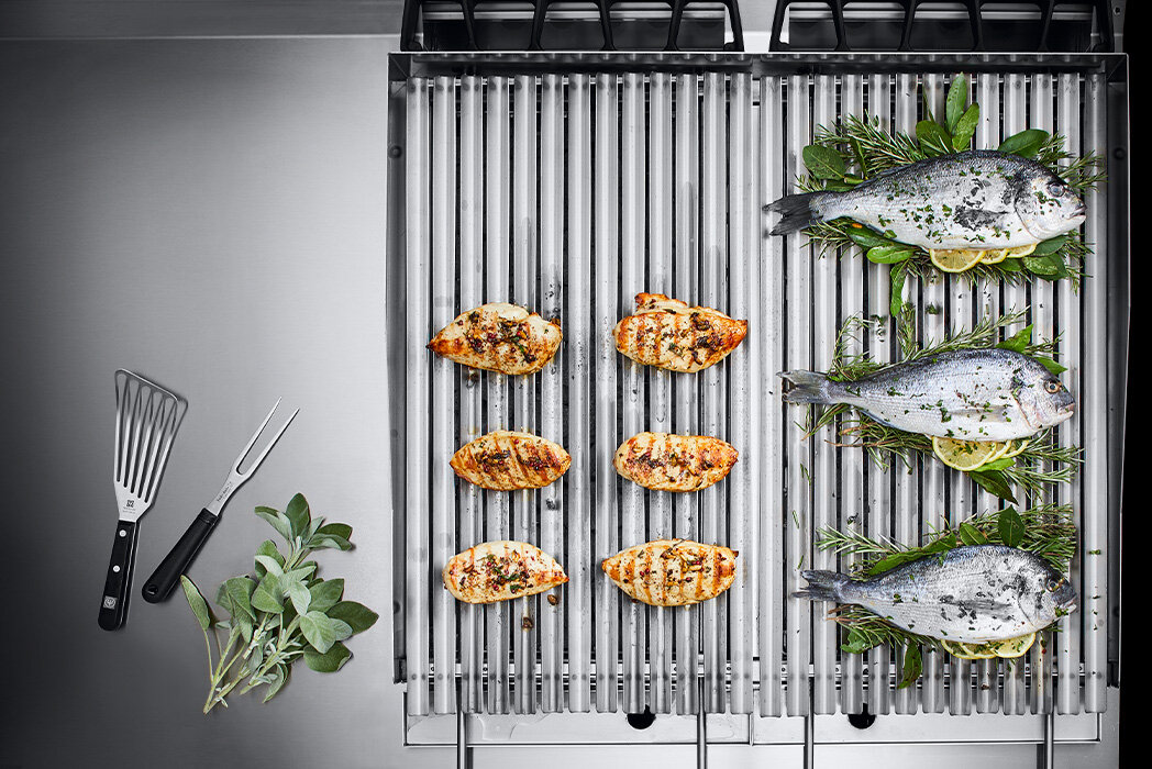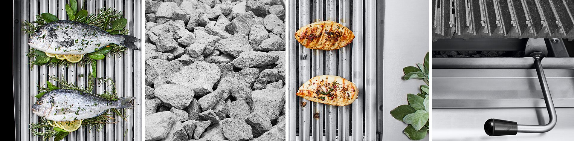 La griglie a pietra lavica Roc 900 donano a carne, pesce, crostacei e verdure un'aroma unico.