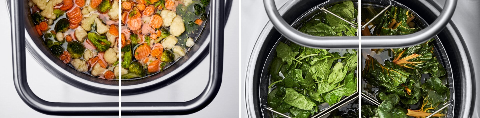 Le pentole Roc 900 sono configurabili con differenti tipologie di cesti per cuocere