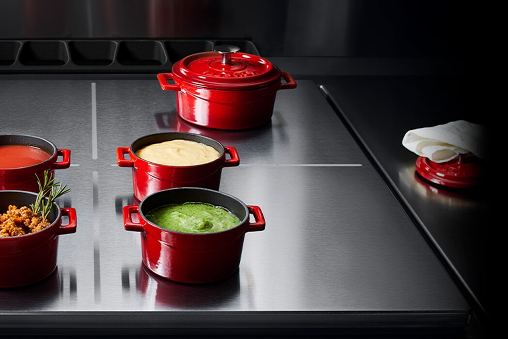 La piastra in acciaio, dotata di 4 zone di cottura indipendenti,